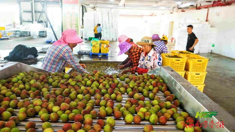 海墾紅明農(nóng)場公司擁有全國最大的荔枝鮮果交易中心,可為客商提供分揀、打包裝箱、冷鏈倉儲(chǔ)物流、冰袋等一體化服務(wù)。許雅 攝