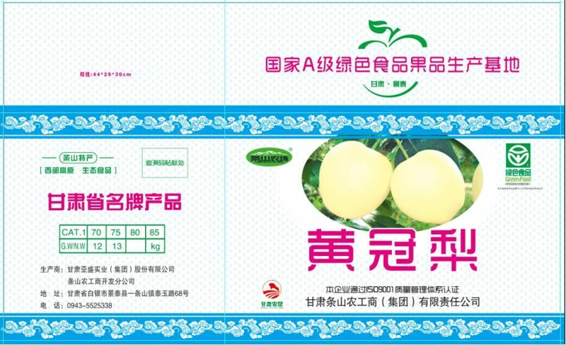 條山農(nóng)場從1993年開始實施綠色食品的生產(chǎn)與認(rèn)證的基礎(chǔ)性工作,先后有啤酒大麥、啤酒花、大接杏、早酥梨、黃金梨、黃冠梨、紅富士蘋果、馬鈴薯、洋蔥、枸杞、杏醬、番茄醬等12個產(chǎn)品被中國綠色食品發(fā)展中心認(rèn)定為綠色食品;林果基地被認(rèn)定為國家A級綠色食品果品生產(chǎn)基地,被國家標(biāo)準(zhǔn)化管理委員會批準(zhǔn)為國家級農(nóng)業(yè)標(biāo)準(zhǔn)化早酥梨種植示范區(qū)。隨著產(chǎn)業(yè)結(jié)構(gòu)調(diào)整,目前已成規(guī)?;?、產(chǎn)業(yè)化發(fā)展的綠色食品有“條山牌”早酥梨、黃冠梨、大接杏、紅富士蘋果、加工型馬鈴薯5個產(chǎn)品;早酥梨、黃冠梨通過有機食品認(rèn)證;馬鈴薯、果品通過了出口產(chǎn)品基地備案認(rèn)證,果品包裝獲得出口注冊登記;條山梨被認(rèn)定為國家地理標(biāo)志產(chǎn)品;條山牌榮獲“2015中國十大梨品牌”和“2015中國果品百強品牌”稱號;早酥梨蟬聯(lián)中國綠色食品博覽會金獎、榮獲2017甘肅農(nóng)業(yè)博覽會金獎;黃冠梨、早酥梨榮獲2017年甘肅名牌產(chǎn)品稱號;“條山”牌早酥梨入選“甘味”農(nóng)產(chǎn)品企業(yè)商標(biāo)品牌名錄。建成了高標(biāo)準(zhǔn)的綠色食品果品基地1萬畝(有機果品1061.1畝)、馬鈴薯基地場內(nèi)場外各1萬畝,輻射帶動周邊市縣發(fā)展林果業(yè)30萬畝。
