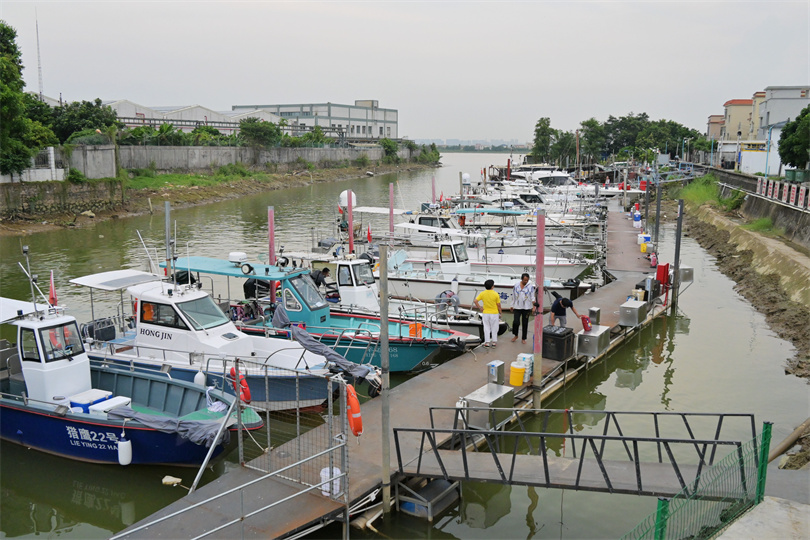 位于磨刀門(mén)水道邊上的神溪村“漁家樂(lè)”海釣游艇碼頭。 (攝影|繆曉劍)