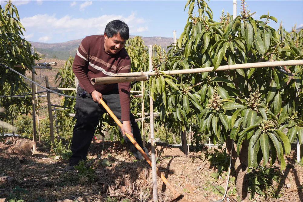 這種與時(shí)間賽跑的智慧,在高海拔山區(qū)體現(xiàn)得更為突出。中心鎮(zhèn)田坪村村民鐘騰平去年12月才賣完最后一批晚熟芒果,“我們這兒海拔比壩區(qū)高不少,晝夜溫差大,果子能再晚熟1個(gè)多月,正好打個(gè)時(shí)間差?!甭槔罱⒐渭艿乃讶煌度胄乱惠喒茏o(hù),2025年,他家200畝芒果總產(chǎn)量超15萬公斤,收入超110萬元,而晚熟品種正是收益的主力軍。