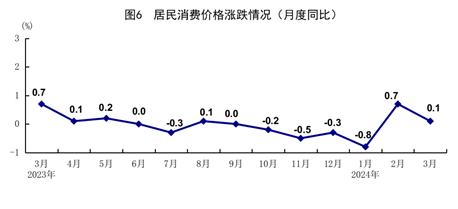 一季度,全國(guó)居民消費(fèi)價(jià)格(CPI)同比持平。分類別看,食品煙酒價(jià)格下降1.7%,衣著價(jià)格上漲1.6%,居住價(jià)格上漲0.2%,生活用品及服務(wù)價(jià)格上漲0.8%,交通通信價(jià)格下降1.4%,教育文化娛樂價(jià)格上漲2.3%,醫(yī)療保健價(jià)格上漲1.4%,其他用品及服務(wù)價(jià)格上漲2.9%。在食品煙酒價(jià)格中,鮮果價(jià)格下降7.3%,豬肉價(jià)格下降7.0%,鮮菜價(jià)格下降3.9%,糧食價(jià)格上漲0.4%。扣除食品和能源價(jià)格后的核心CPI同比上漲0.7%。3月份,全國(guó)居民消費(fèi)價(jià)格同比上漲0.1%,環(huán)比下降1.0%。