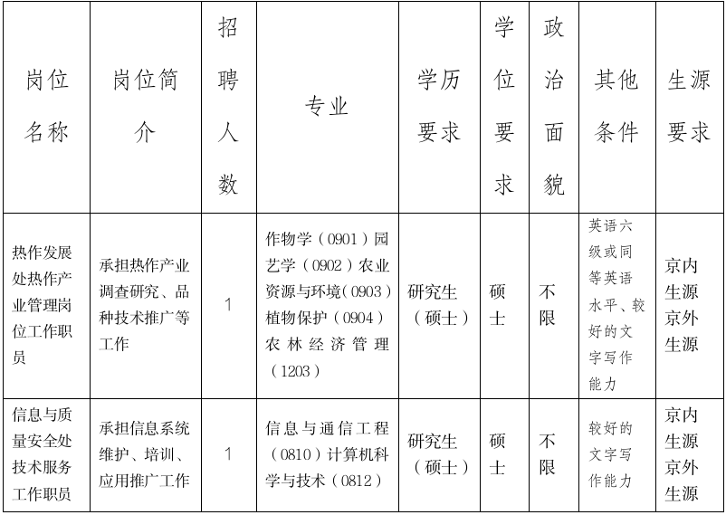 6.根據(jù)北京市疫情防控要求,我單位將隨時(shí)調(diào)整招聘工作有關(guān)安排。請(qǐng)考生及時(shí)關(guān)注中國(guó)農(nóng)業(yè)農(nóng)村人才網(wǎng)、中國(guó)農(nóng)墾(熱作)網(wǎng)相關(guān)信息。