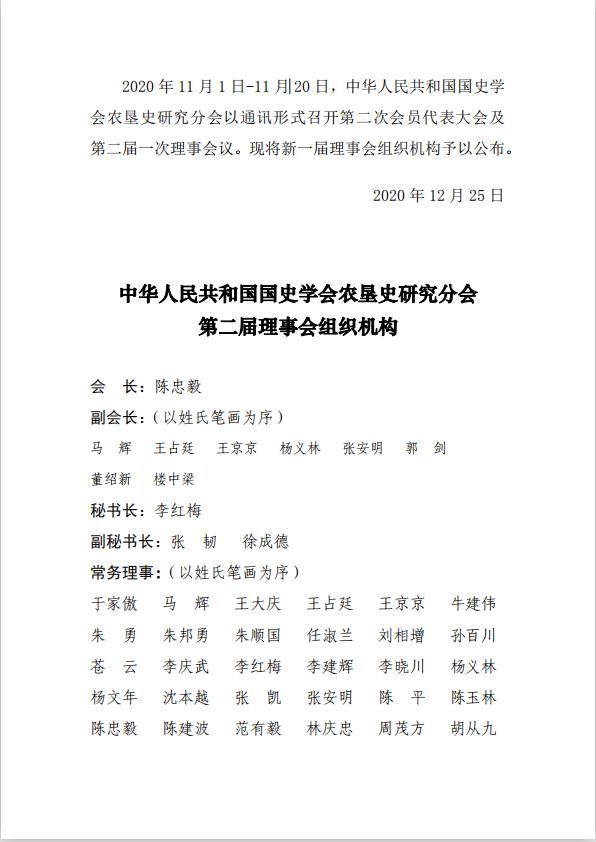 中華人民共和國國史學會農(nóng)墾史研究分會第二屆理事會組織機構(gòu)