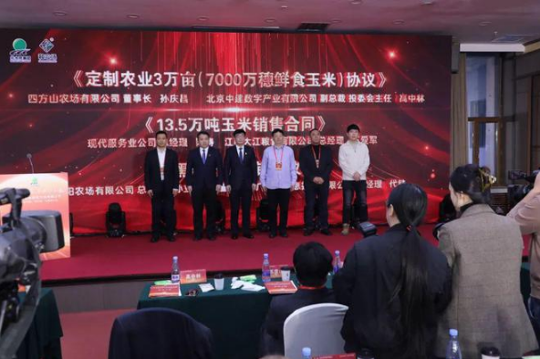 此次推介會,哈爾濱有限公司以資源資產(chǎn)、文化旅游、品牌建設(shè)和產(chǎn)業(yè)配套等方面為主要內(nèi)容,對“和農(nóng)場”品牌產(chǎn)品、“四區(qū)”建設(shè)及資源資產(chǎn)一體化、農(nóng)文旅融合發(fā)展一體化平臺產(chǎn)業(yè)、賓館產(chǎn)業(yè)集群及洗滌工廠進(jìn)行推介,并與黑龍江省企業(yè)發(fā)展促進(jìn)會、北京中健數(shù)字產(chǎn)業(yè)有限公司、黑龍江省體育旅游融合發(fā)展促進(jìn)會等72家企業(yè)及商會簽訂了《定制農(nóng)業(yè)3萬畝(7000萬穗鮮食玉米)協(xié)議》《13.5萬噸玉米銷售合同》《黑稻產(chǎn)業(yè)供銷協(xié)議》《農(nóng)文旅融合發(fā)展促進(jìn)協(xié)議》《快消品銷售協(xié)議》等協(xié)議。