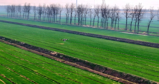 春雨綿綿潤(rùn)沃野,科技助農(nóng)正當(dāng)時(shí)。濕潤(rùn)的麥田上空,一架架植保無(wú)人機(jī)正按照設(shè)定路線(xiàn)穿梭作業(yè),上演著“速度與激情”?!把b肥、起飛、噴施,一氣呵成。一臺(tái)無(wú)人機(jī)每小時(shí)可施肥50畝,全天候連續(xù)作業(yè)可達(dá)千余畝?!绷a(chǎn)區(qū)負(fù)責(zé)人倪信軍說(shuō),在春雨墑情適宜的關(guān)鍵期,無(wú)人機(jī)作業(yè)不受田間路況影響,不僅效率倍增,還能有效避免傳統(tǒng)拖拉機(jī)進(jìn)田對(duì)小麥根系造成的損傷,真正實(shí)現(xiàn)精準(zhǔn)撒施、減肥增效。