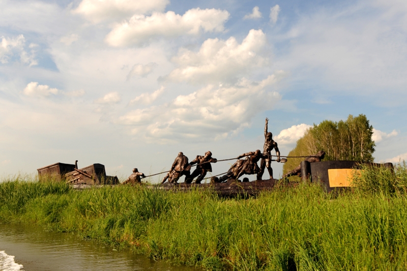 雁窩島上,殘?jiān)珨啾谡洳刂呿H、女真、隋唐的遺跡,而刻有“潛水掛鉤”“張德信運(yùn)齒輪”“羅海榮水上運(yùn)油”字樣的碩大雕塑,蘊(yùn)含著北大荒精神發(fā)源地曾經(jīng)上演的一幕幕震撼心靈的場(chǎng)景,展示著北大荒人誓把荒原變糧田的豪邁氣概。