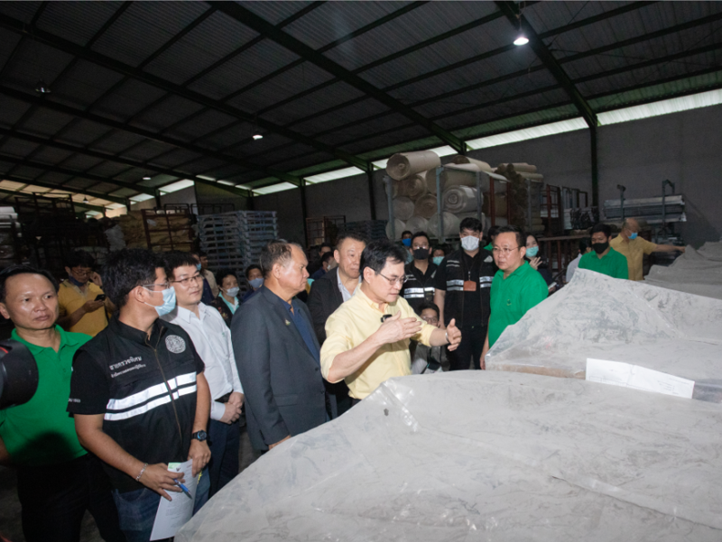 在工廠車間,朱林副總理參觀了公司生產(chǎn)線和公司成品倉(cāng)庫(kù),對(duì)泰華公司濃縮乳膠的二維碼追溯系統(tǒng)表示贊賞,對(duì)公司的5L等產(chǎn)品通過(guò)諸多國(guó)際知名企業(yè)認(rèn)證點(diǎn)贊,并提出泰國(guó)應(yīng)加大本地的橡膠使用量,積極拓展海外的銷售渠道,提升泰國(guó)天然橡膠的知名度和美譽(yù)度。