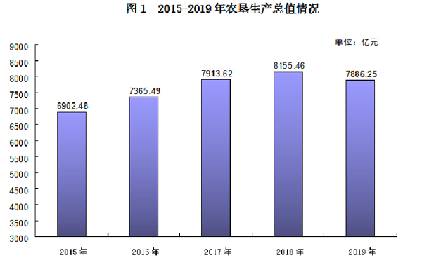 全年實現農業(yè)總產值3862.05億元,比上年增長1%。其中:種植業(yè)產值2365.60億元,林業(yè)產值98.58億元,畜牧業(yè)產值889.51億元,漁業(yè)產值273.83億元,其他輔助性活動產值234.53億元。