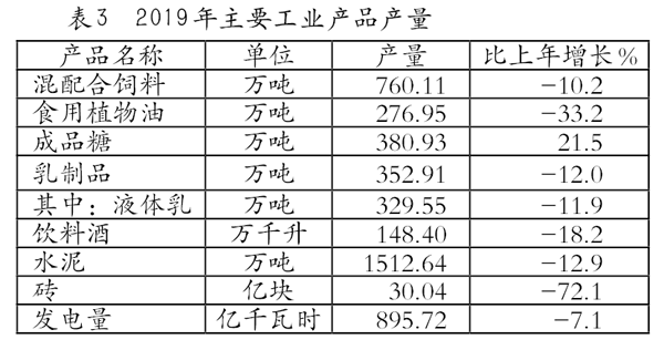 主要工業(yè)產品產量3見表3。