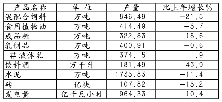 主要工業(yè)產(chǎn)品產(chǎn)量(見表3)。