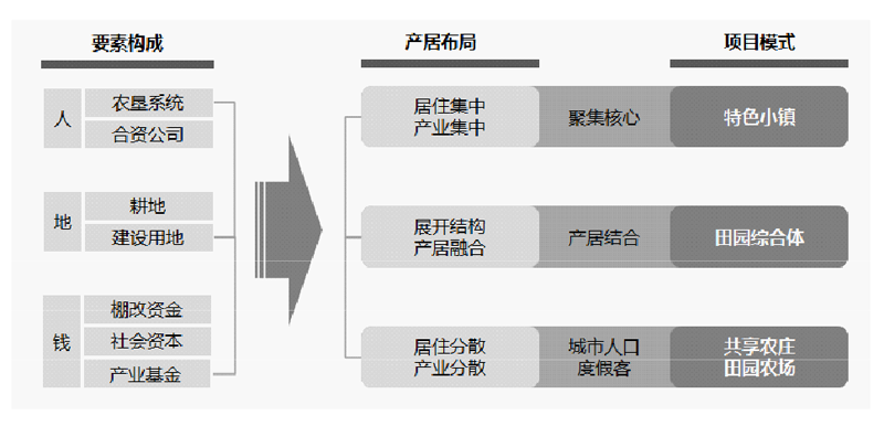 農(nóng)墾系統(tǒng)合理的產(chǎn)居結(jié)構(gòu)離不開人、地、錢的要素合理配置。結(jié)合特色小鎮(zhèn)、田園綜合體、共享農(nóng)莊、田園農(nóng)場等項(xiàng)目,形成一套以農(nóng)旅融合為動力、推動農(nóng)墾系統(tǒng)全面實(shí)施鄉(xiāng)村振興戰(zhàn)略的解決方案和模式。